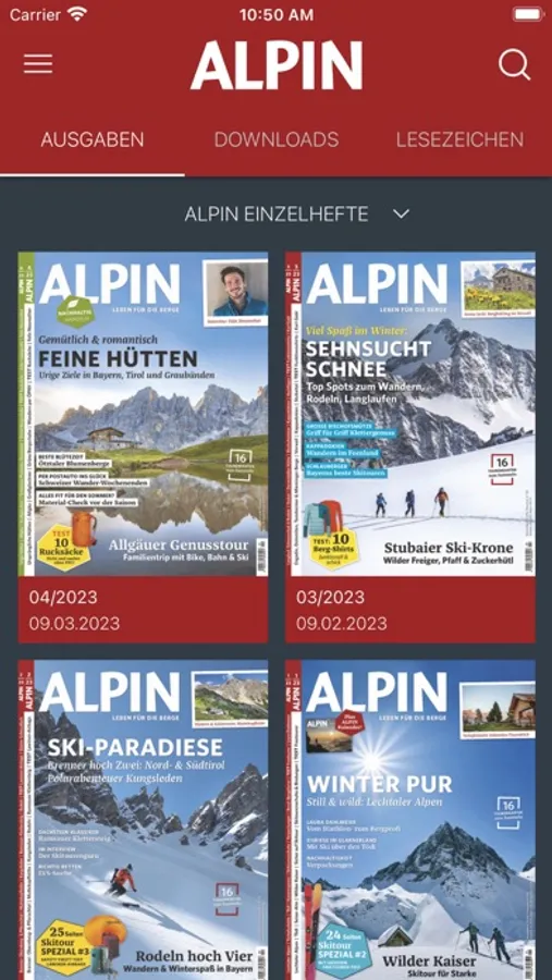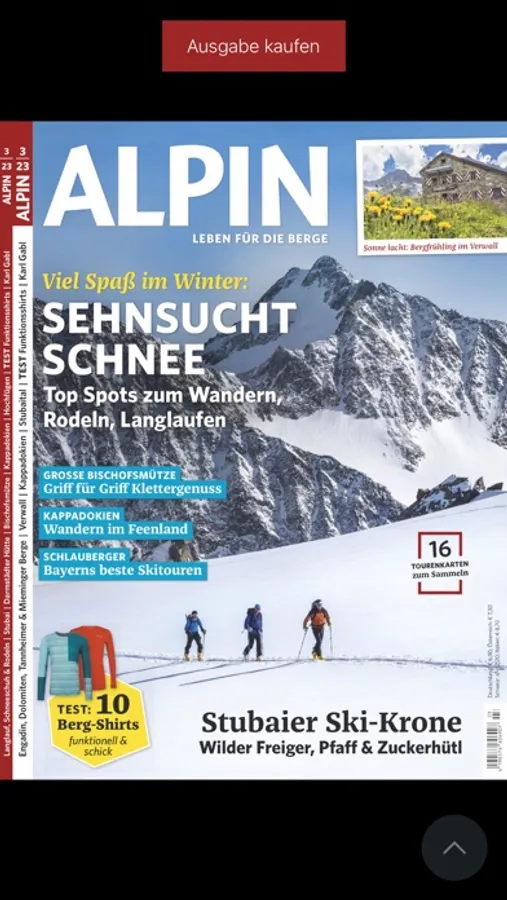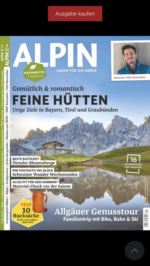 In der kostenlosen ALPIN-App finden Sie ab sofort das aktuelle Heft als eMagazine. Jede Ausgabe kostet nur 5,99 Euro. Natürlich gibt es die ALPIN eMagazine auch im Abo – für 35,99€ pro Jahr. Sie sparen damit über 50% gegenüber dem Einzelkauf.