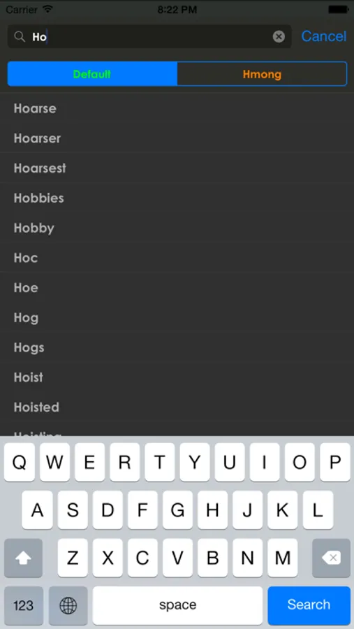 You can search both English and Hmong words!