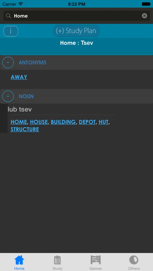 This is not only a dictionary but also a learning tool. MCQ (Multiple Choice Question) option available. There is auto suggestion so you need not type full words. You can add words to study plan.