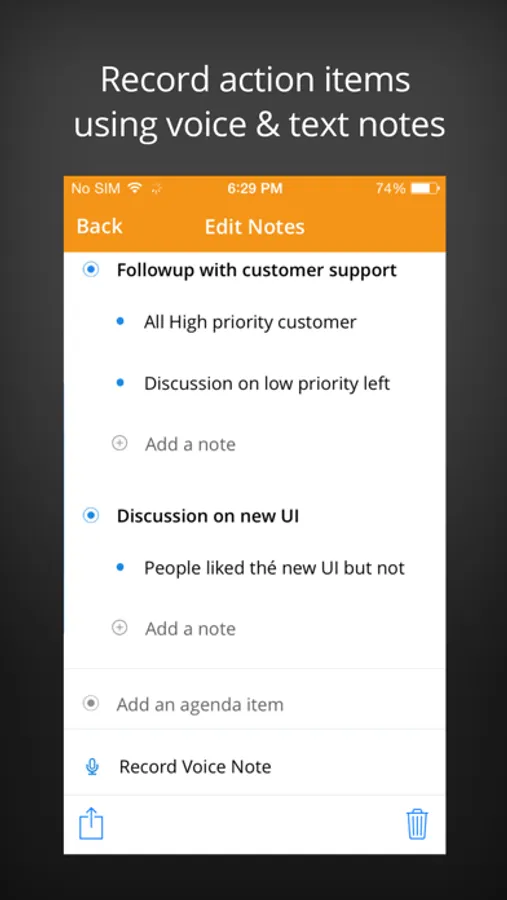 * Recording Notes: Voice notes can be recorded against recently concluded calls, these are automatically saved on the app.