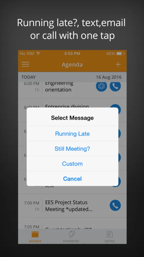 * Send Notifications: Notify meeting & conference call participants with a single tap, via email or SMS (using predefined & custom messages).