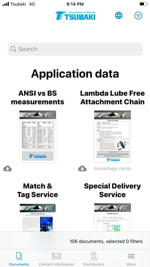 With the Tsubaki Tree app you have easy access to all available and up to date company and product documentation and videos.
