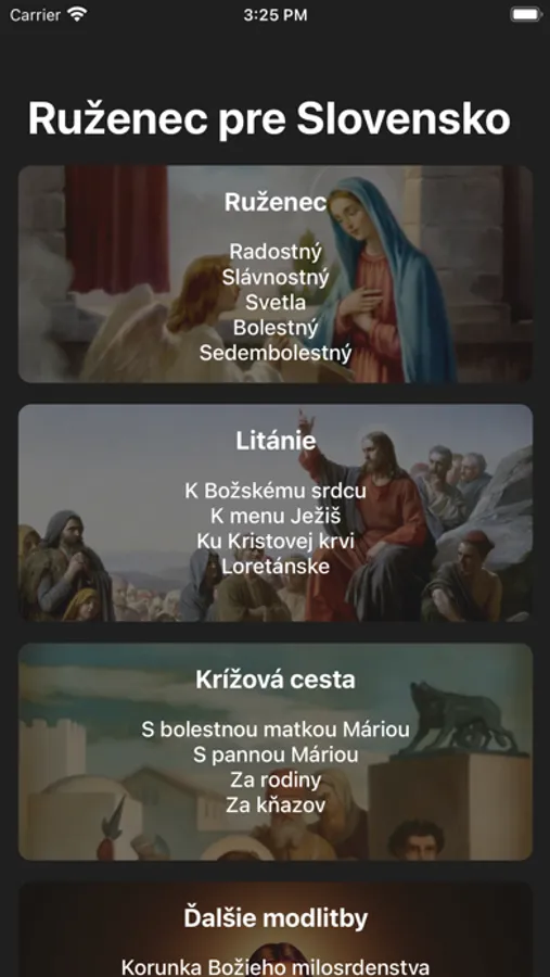 Ruženec, litánie, krížová cesta, korunka božieho mlosrdenstva a ďalšie modlitby so zvukovou nahrávkou a textami. Stiahni si do mobilu a môžeš počúvať offline. Najlepšia pomôcka na rozjímanie či už v práci, doma, alebo pri cestovaní.
