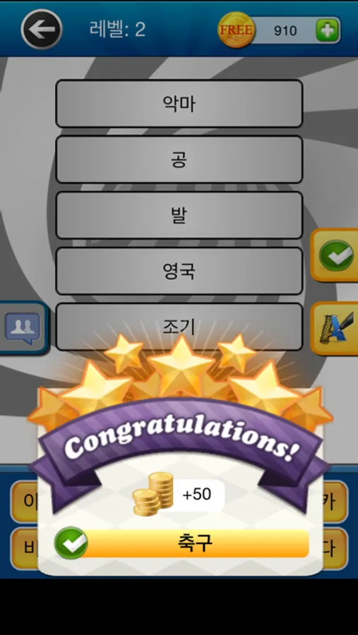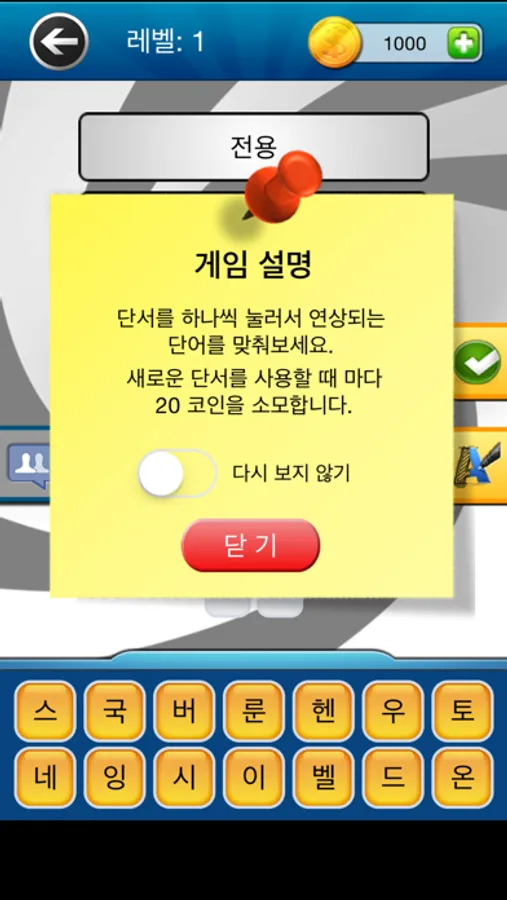 - 단어 추리 퀴즈는 5개의 단어를 차례로 보여줍니다.