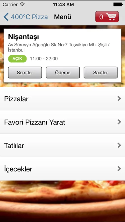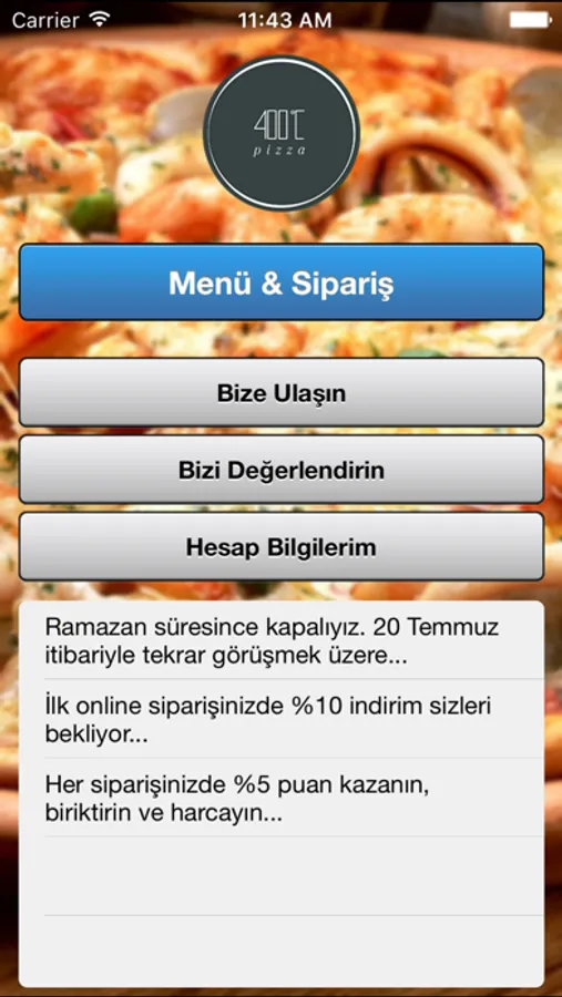 400C Pizza lezzetleri artık iPhone uygulamamızla ile her zaman yanınızda.