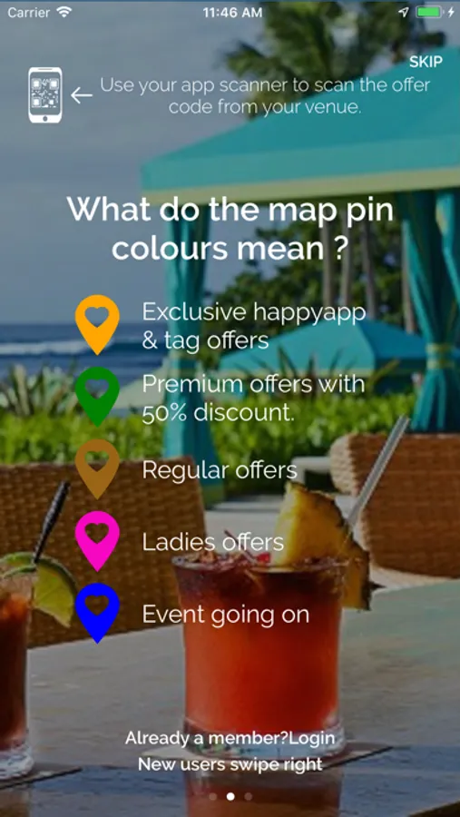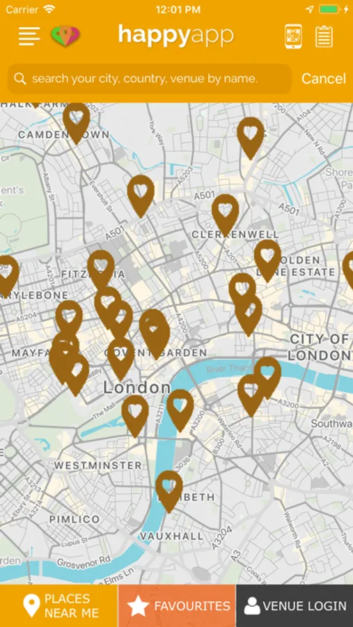 happyapp allows you to claim discounted offers using our built in QR code scanner relative to where you are standing. It’s a dynamic application with restaurants,bars and venues updating their offers live on happyapp.