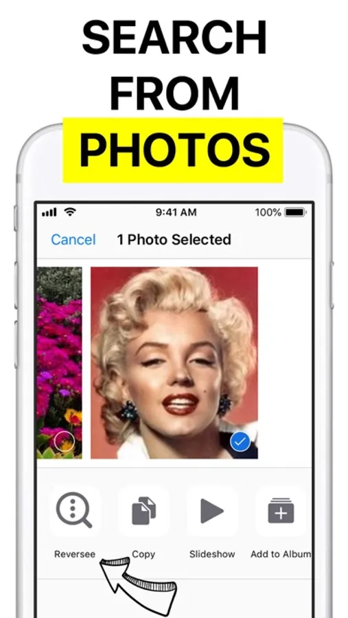 - Smart navigation of your device photos (you can search by a picture in the middle of the camera roll and then come back to search for a picture nearby, avoiding to scroll the photos all over again).