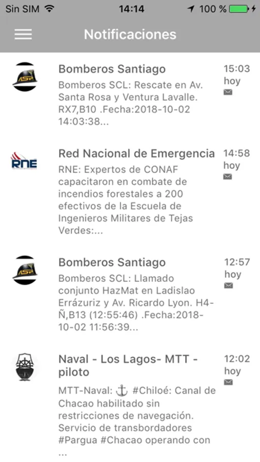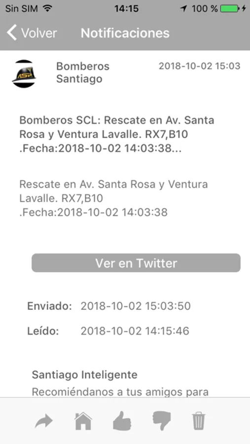 Sólo recibes avisos de tu configuración, es decir, de tú línea de Metro, de tú recorrido Transantiago, de tú patente, de tú comuna, etc.