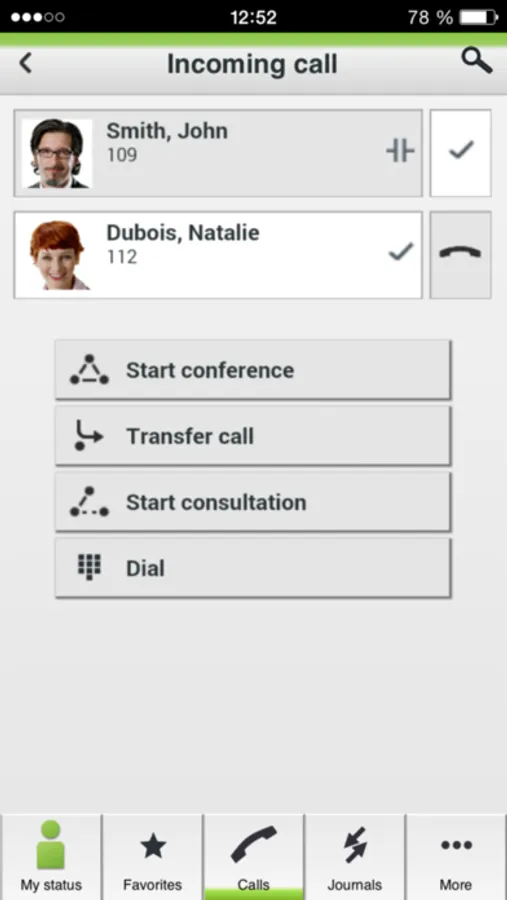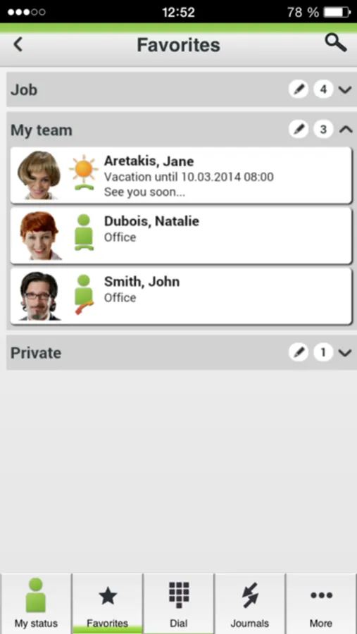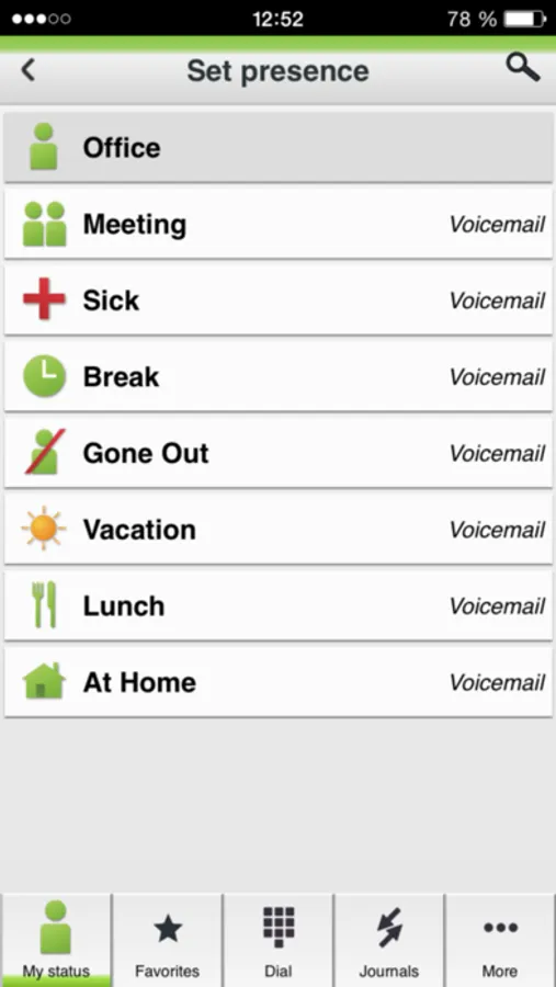 Besides convenient dialing incl. one number service, myPortal to go offers access to many other UC related features like favorites, directories, journal, presence status, voicemail access and others.