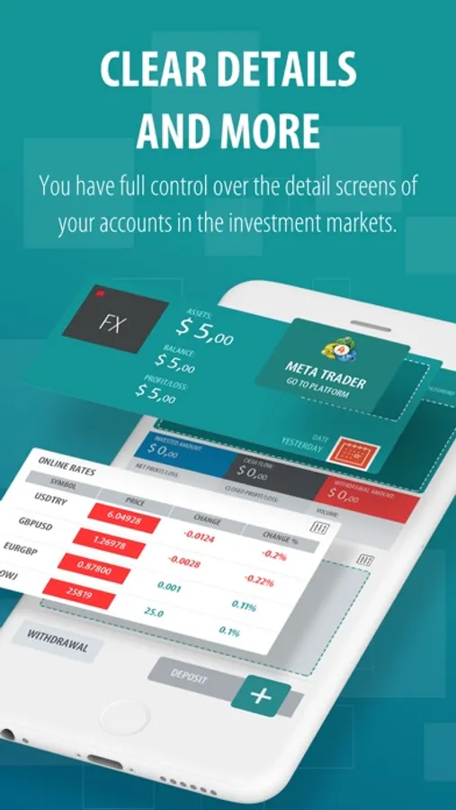 İnvestAZ İnvestor Platforması dünya maliyyə bazarlarına çıxışı təmin edən ən rahat tətbiqetmədir. Bu tətbiqetmə vasitəsi ilə siz Azərbaycan, Türkiyə, ABŞ, Avropa kimi regional maliyyə bazarlarında səhm, istiqraz, o cümlədən valyuta, əmtəə, indeks, kriptovalyutalar üzrə fərq müqavilələri ilə ticarət edə bilərsiniz.