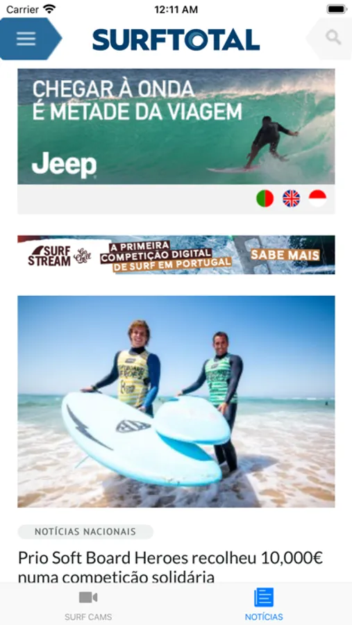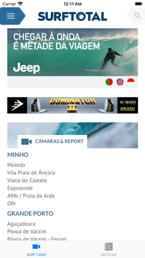 A aplicação Surftotal mostra as imagens das câmaras ao vivo nas Praias. De Moledo a Faro. Os melhores surf spots de Portugal em live streaming nesta app.