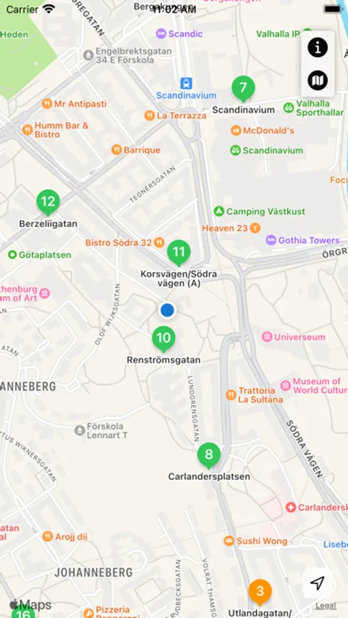 You can navigate to all of Gothenburg's Styr & Ställ stations, and the information is always up to date. So you can always easily see if a station is closed or under construction.