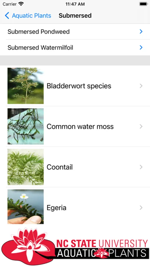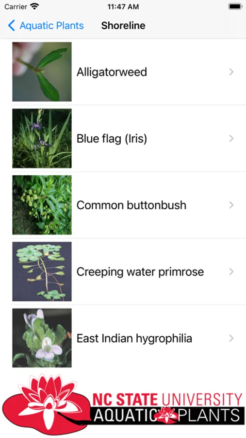 Whether you're a professional botanist or a casual nature enthusiast, the NC State University (NCSU) Aquatic Plants app has detailed information on a wide variety of aquatic plants to assist in identification.