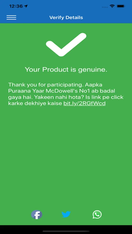 3) Use our app to scan the bar code or manually input the PIN and receive an instant reply stating that the product is genuine or warning that it is suspicious.