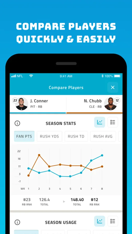 In a work league with a real hotshot? NFL Fantasy comes equipped with the tools you need to make it to the top, including NFL Fantasy-exclusive features like Next Gen Stats and all-new player comparison tools.
