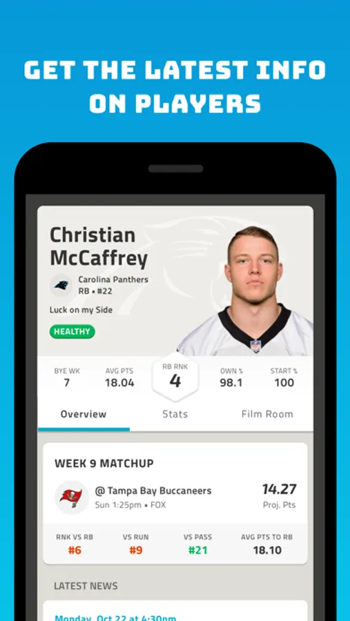 + Catch up with official stats, news, and injury updates direct from NFL experts.