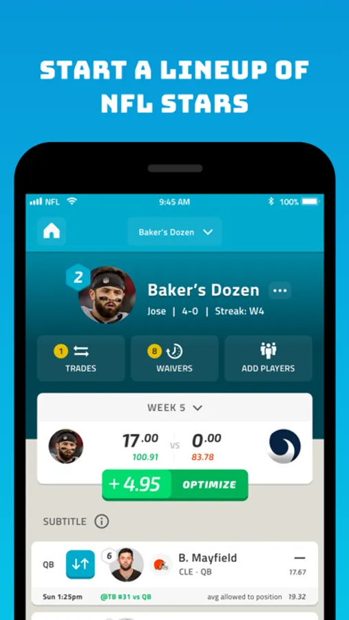 + The NFL Fantasy-exclusive Optimize Lineup feature makes fantasy football approachable for players of all skill levels.