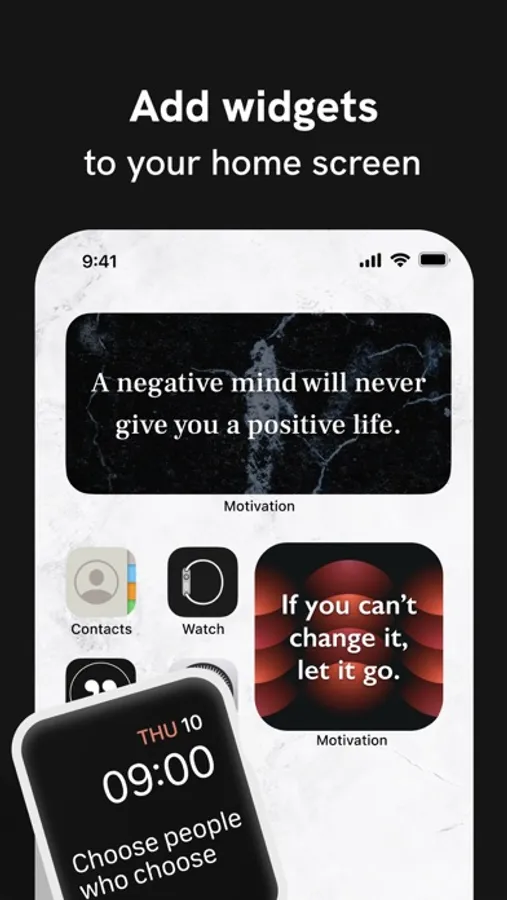 Now, from iOS 14, you can think positive thoughts without even trying with the Motivation Widget! Simply install the widget in your home screen and customize it from the app. You can have as many widgets as you want!