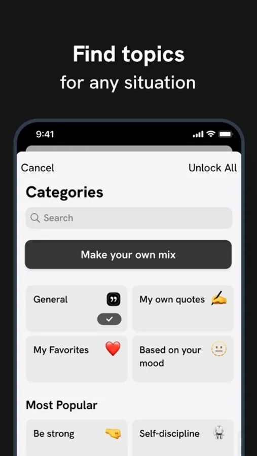 Whether you're going through hard times, need an extra push to get stuff done, or like sharing inspirational quotes in social media, Motivation has you covered.