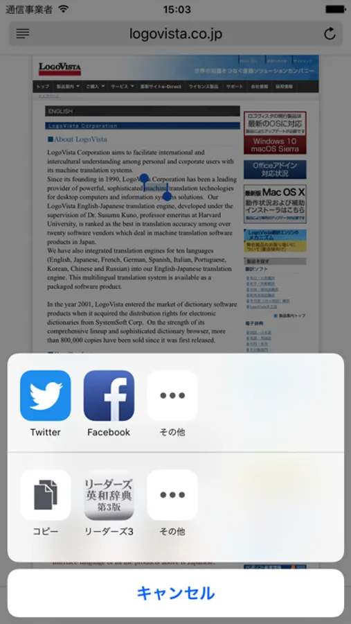 Safari 等のアプリから選択した単語を直接参照出来ます。