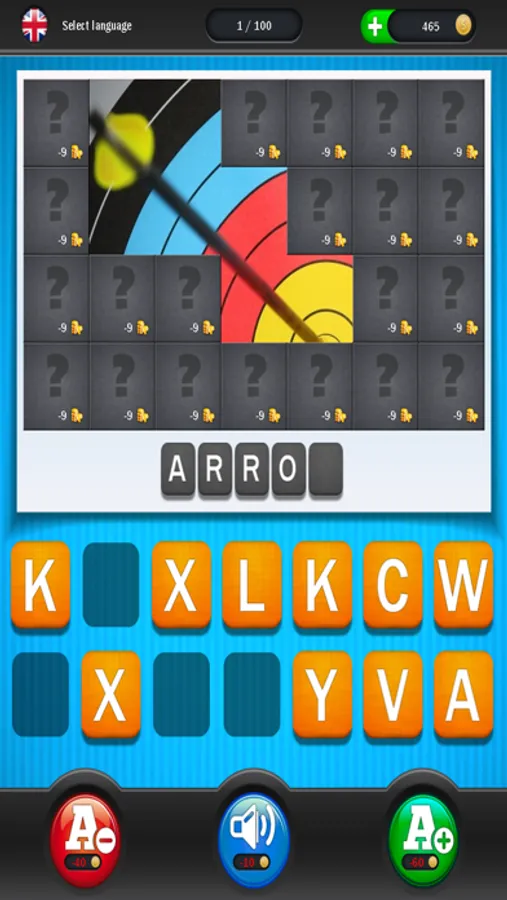 But sometimes it can also help to see a picture that matches the sound. This can often give a very good hint at the target word. The picture that matches the sound is partly visible in the top right-hand corner and can be completely revealed by clicking on the hovering question mark. But beware: this will cost you a lot of coins.