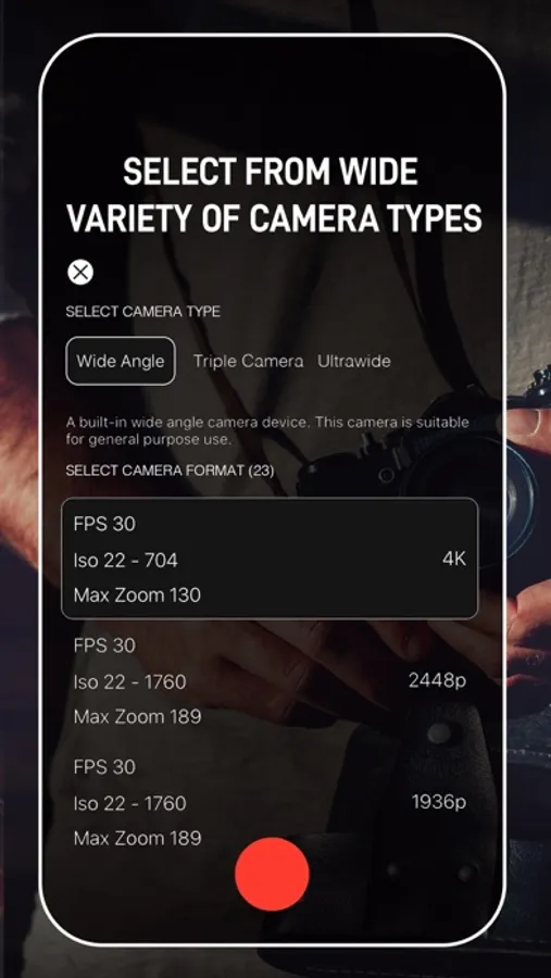 Choose from a range of different camera types and formats for both front and back cameras or just use the default. It won’t let you down!