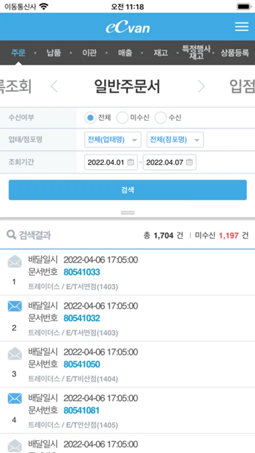 · 주문: 일반주문서/입점제안서/신선주문서 조회가 가능합니다. · 납품: 납품확인서/입점확인서 조회가 가능합니다.