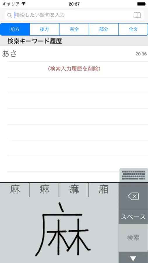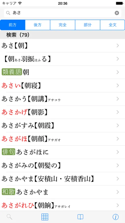 文字を入力すると候補見出し語が表示されるので、うろ覚えでも見つけやすい