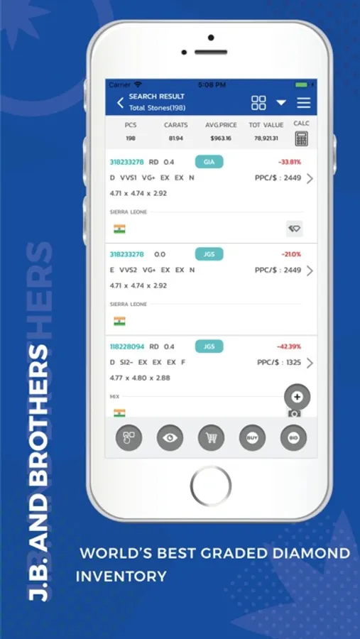 3. Select your preferred stones from your search Result by selecting the appropriate checkbox (e.g. Select, Buy, SL, Mail, Bid/PEP etc) & press Submit button.