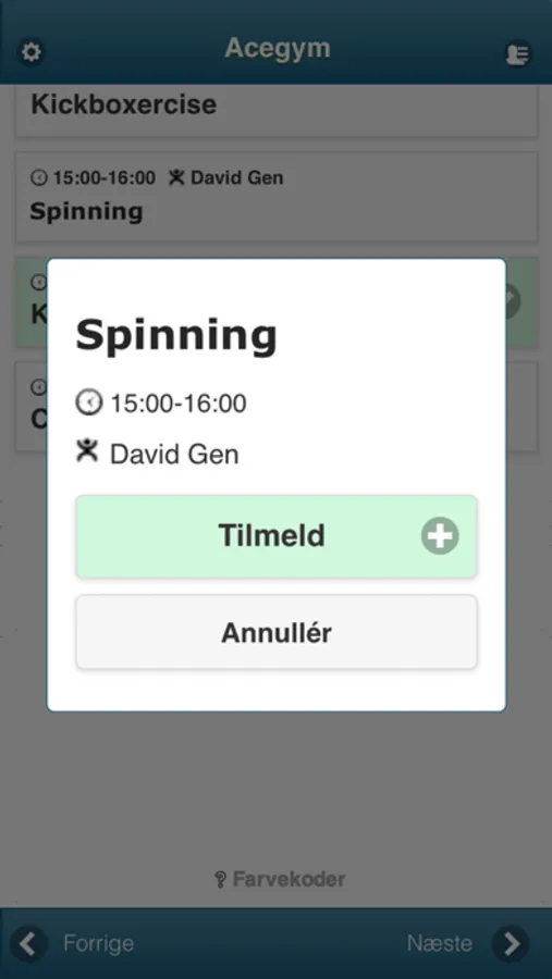 * se hvilke hold der er i det fitness center/kæde er man er oprettet i