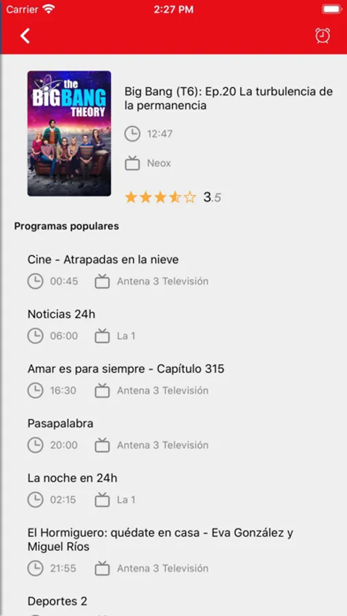 - Establece un recordatorio y la aplicación te avisará cuando el programa está a punto de comenzar. No te pierdas tus programas favoritos de nuevo!