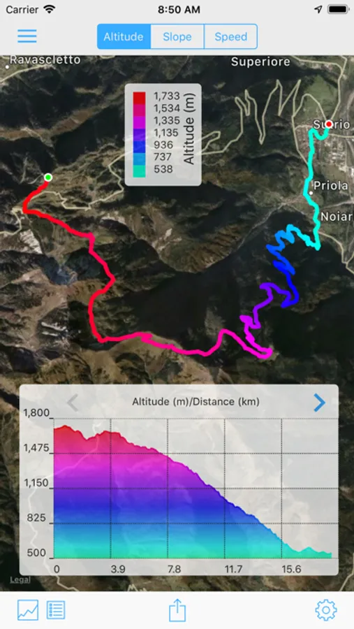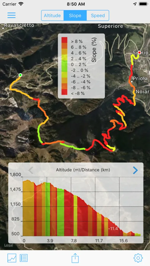 View and share stunning maps by colouring your trails with altitude, slope or speed.
