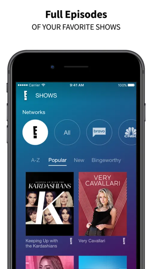 Get full episodes of E!'s must-know pop culture shows like Keeping Up with the Kardashians, Total Bellas, The Bradshaw Bunch, Botched, Live from E! and loads more new stuff all the time. So stop reading and start watching.