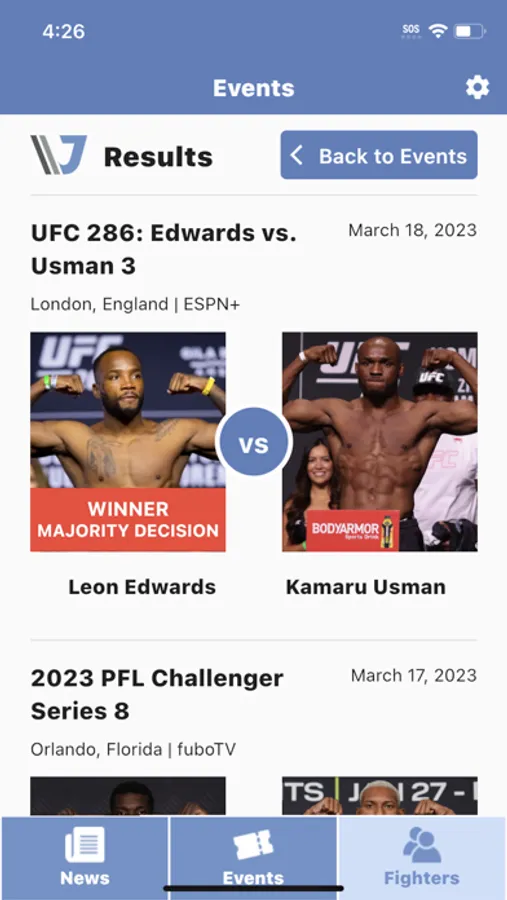 - The ability to filter news for your favorite organizations, including the UFC, Bellator, WSOF, Cage Warriors and AXS TV Fights