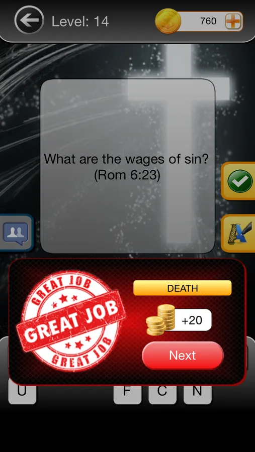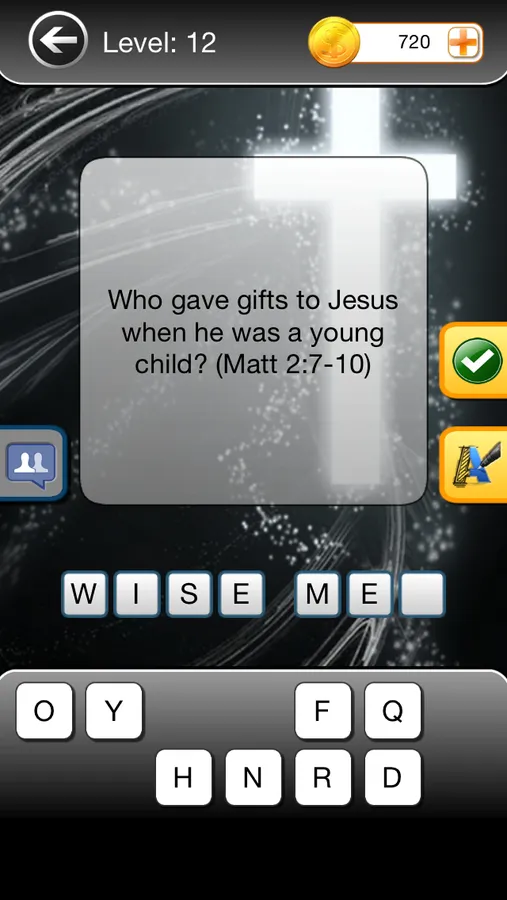Some of the questions are bible quotes in which you choose the word or phrase that finishes the well-known Bible quotation.