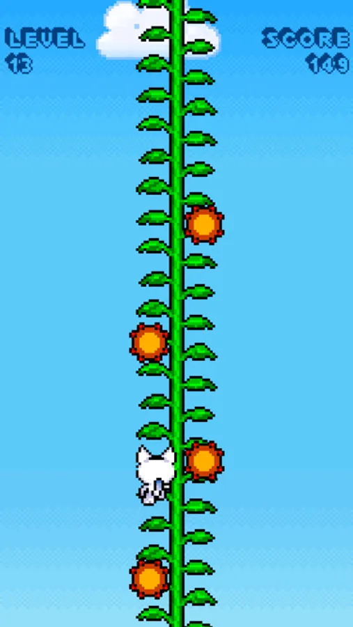 Jump to the beanstalk and start climbing. Check out these spinys falling down. Make a quick tap to dodge them and continue your way.