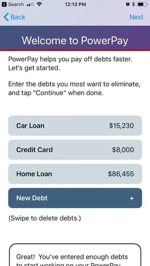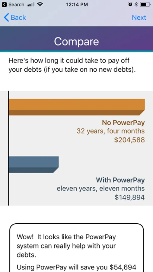 PowerPay App will help you develop a personalized, self-directed debt elimination plan. Discover how quickly you can become debt free and how much you can save in interest costs by following your debt reduction plan.