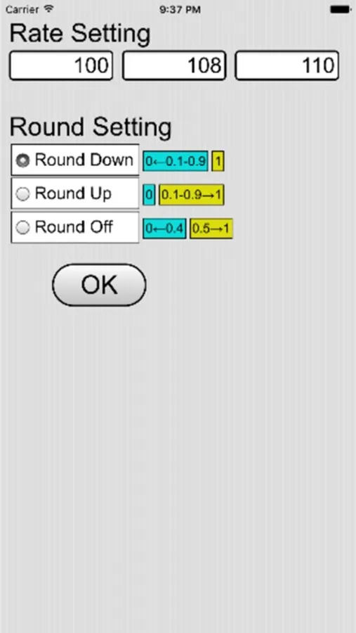 Rate change, rounding (rounded down, rounded up, rounded off) can be selected.