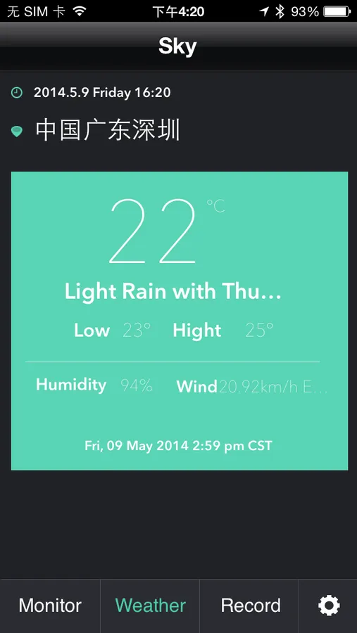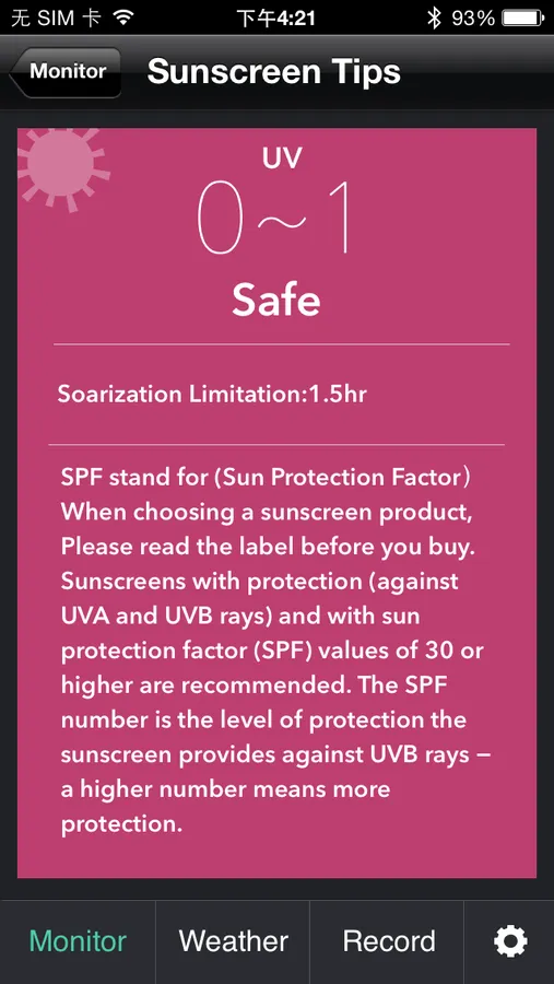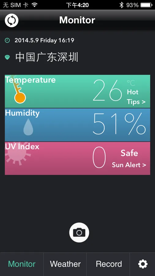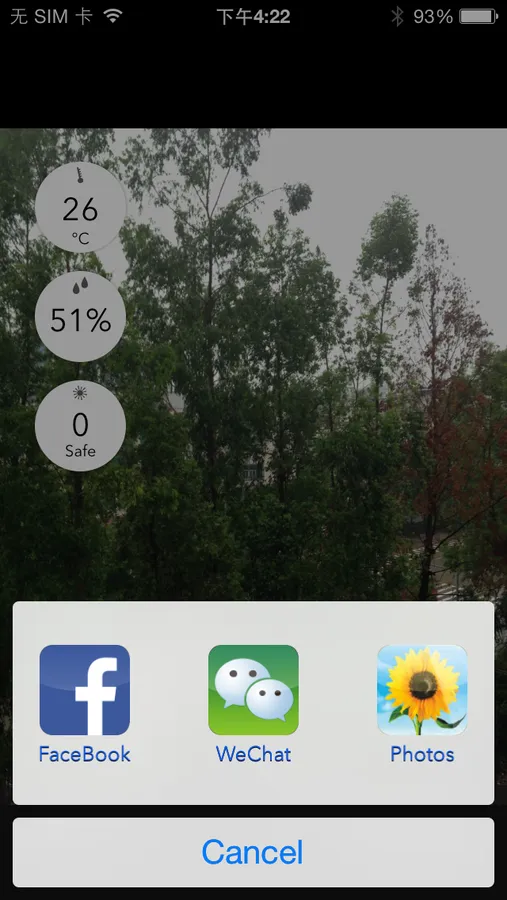 View UV history and local weather forecast, share environment temperature, humidity, and UV level on Facebook & WeChat!!!