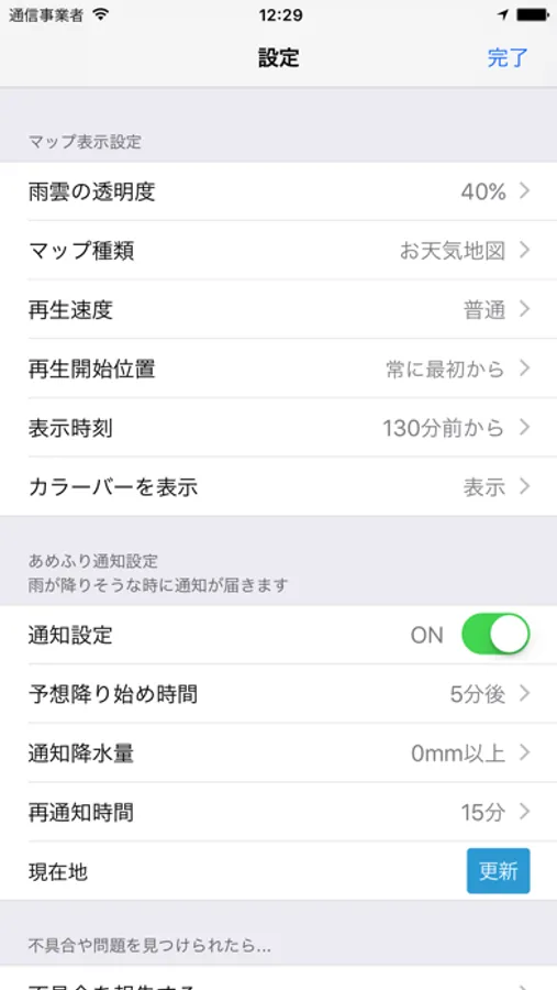Also, to get notified at your current location, go to "Settings" → "General" → "App background update" and turn on "Amefuri".