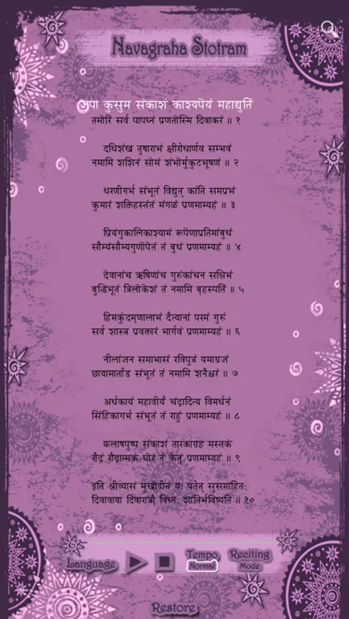 And reciting these mantras removes all our threefold afflictions – if any, from the nine planets. We also do receive abundant pleasures, have a sound and good health.