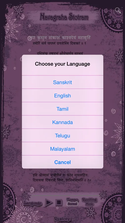 2. Multi language support (Sanskrit, English, Tamil, Kannada, Telugu, Malayalam and more to be included)