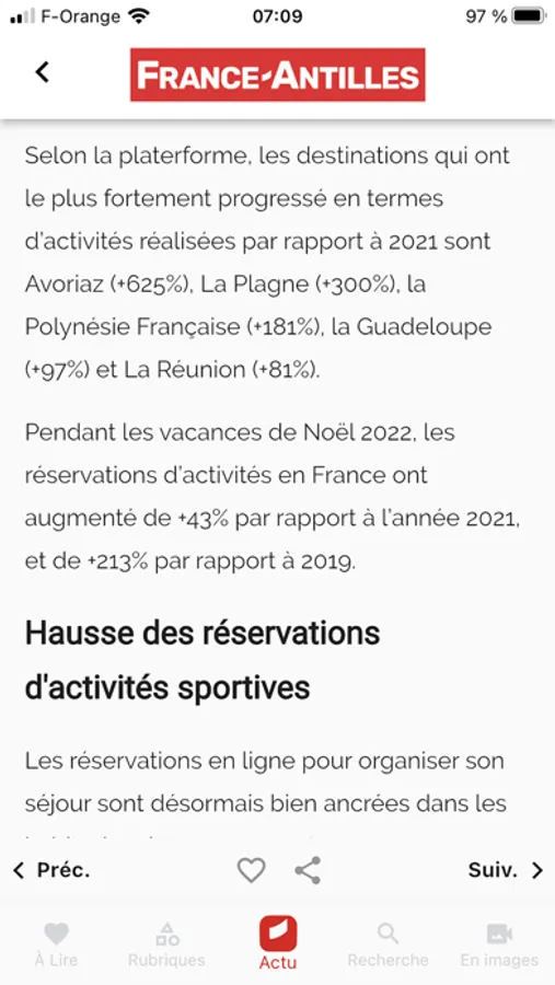 Accédez en un clic à la dernière édition du journal France-Antilles Guadeloupe, en affichant le menu.