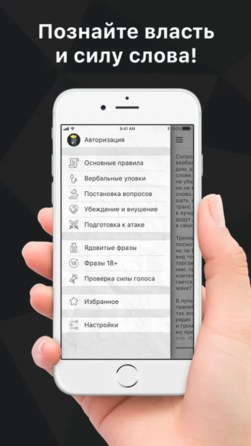 Это приложение поможет Вам: отличать, в каком контексте и при каких вопросах ваши аргументы ничего не значат или, наоборот, являются решающими; устранить противоречия в разговоре с собеседником; научитесь правильно использовать различные вербальные уловки; находчиво и элегантно устранить поставленные для Вас ловушки; в горячих спорах не терять головы и вести себя уверенно, выучите некоторые ядовитые фразы, а так же многое другое!