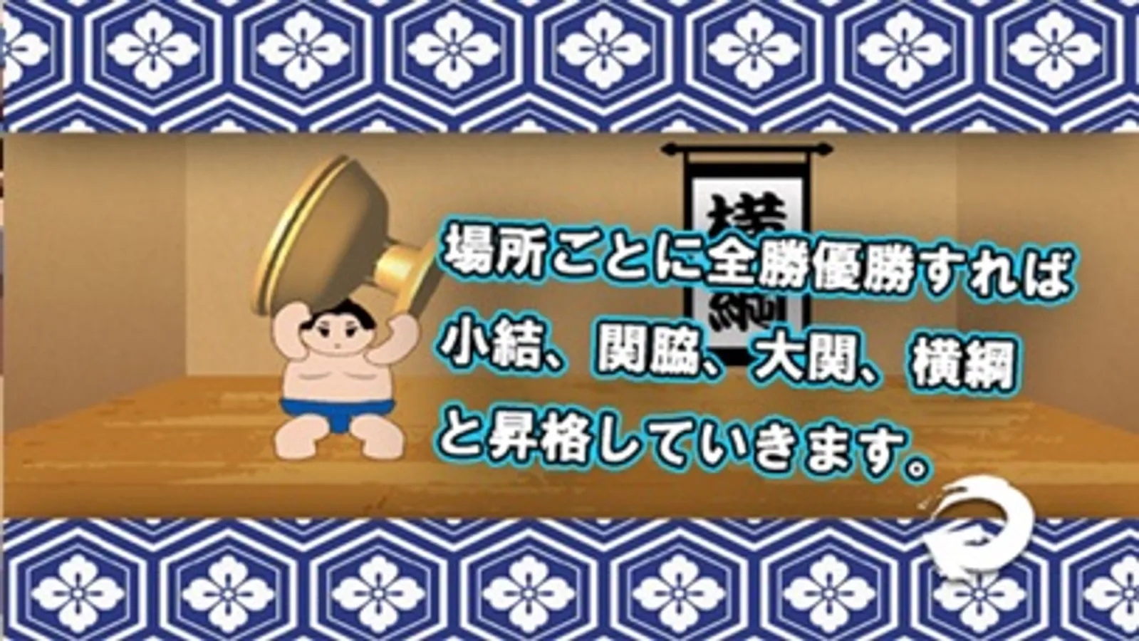 場所ごとに全勝優勝すれば小結、関脇、大関、横綱と昇格していきます。ぜひ頑張って横綱、大関を目指してください!