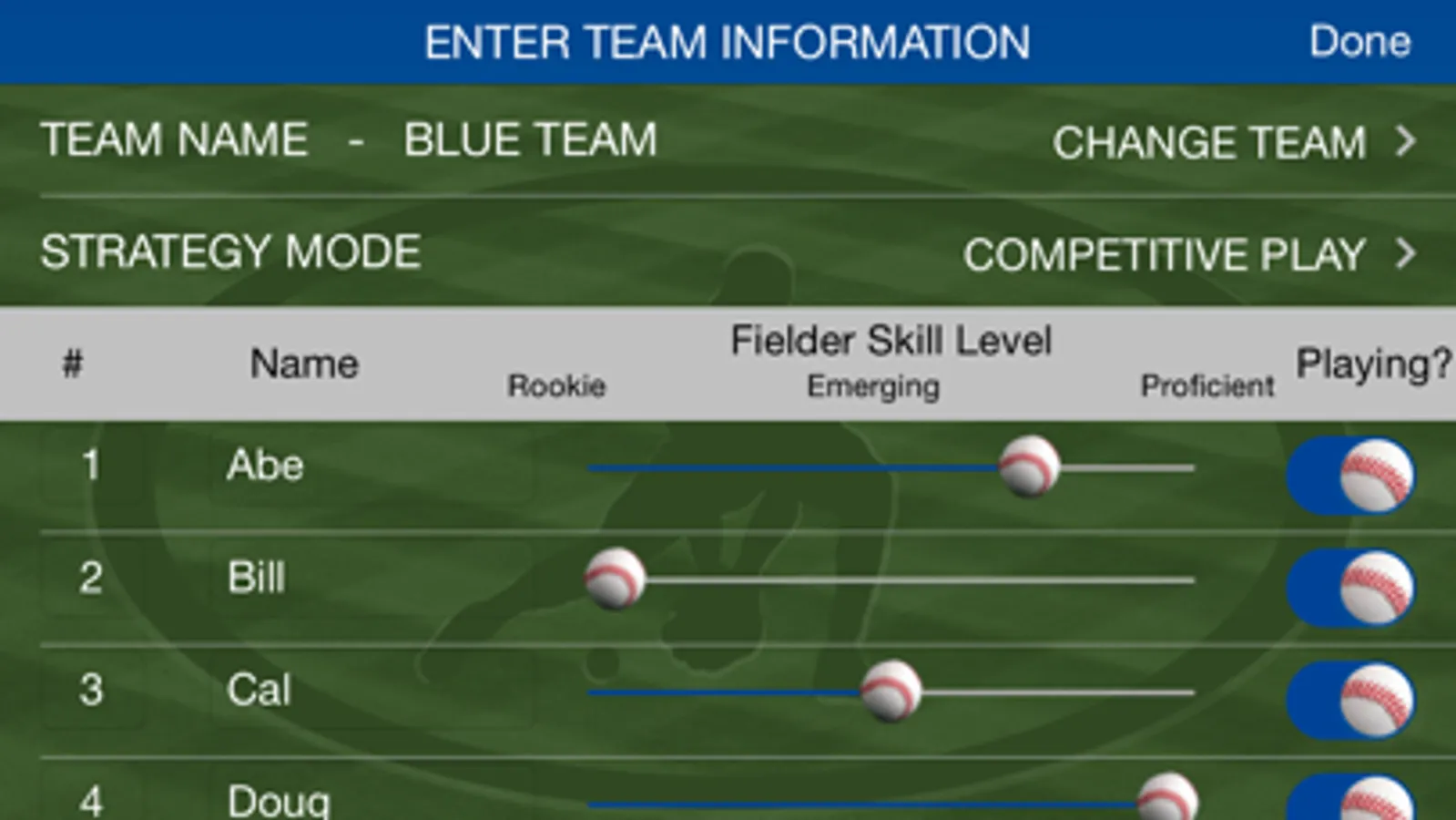 PLAY BALL LINEUP has two strategy modes a coach can use to create a lineup: Instructional Play and Competitive Play. Each strategy mode contains easy to use settings and inputs designed to completely customize a fair yet competitive lineup for game day success. Whether you need to create a lineup where everyone is encouraged to play everywhere, or where you're playing to win and every player has a spot, PLAY BALL LINEUP puts your players and team in the best position to play safe, have fun and succeed on game day.