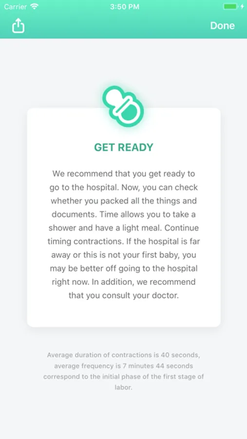 This app is not a medical device and our recomendations are based on standard indicators. Your labor may occur differently. Therefore, do not rely exclusively on our app.