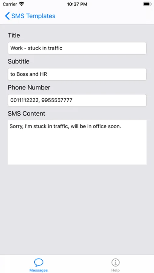 Send pre-configured messages to one or more preset phone numbers. Recommended if you need to send the same message frequently to the same destination(s). Very useful for SMS based automation systems such as Alarm diallers.