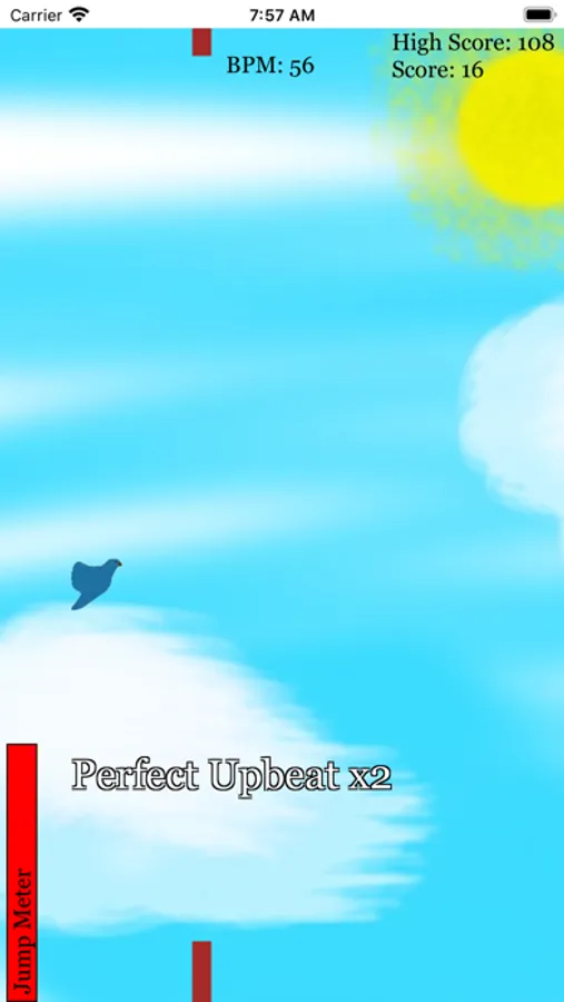Tap the screen on the upbeats to make the bird fly and avoid the obstacles. Tap closer (in time) to the bass line for a lower jump.