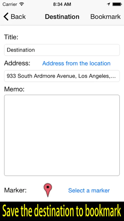 Open the details screen in the destination balloon, add memos & addresses, and save!